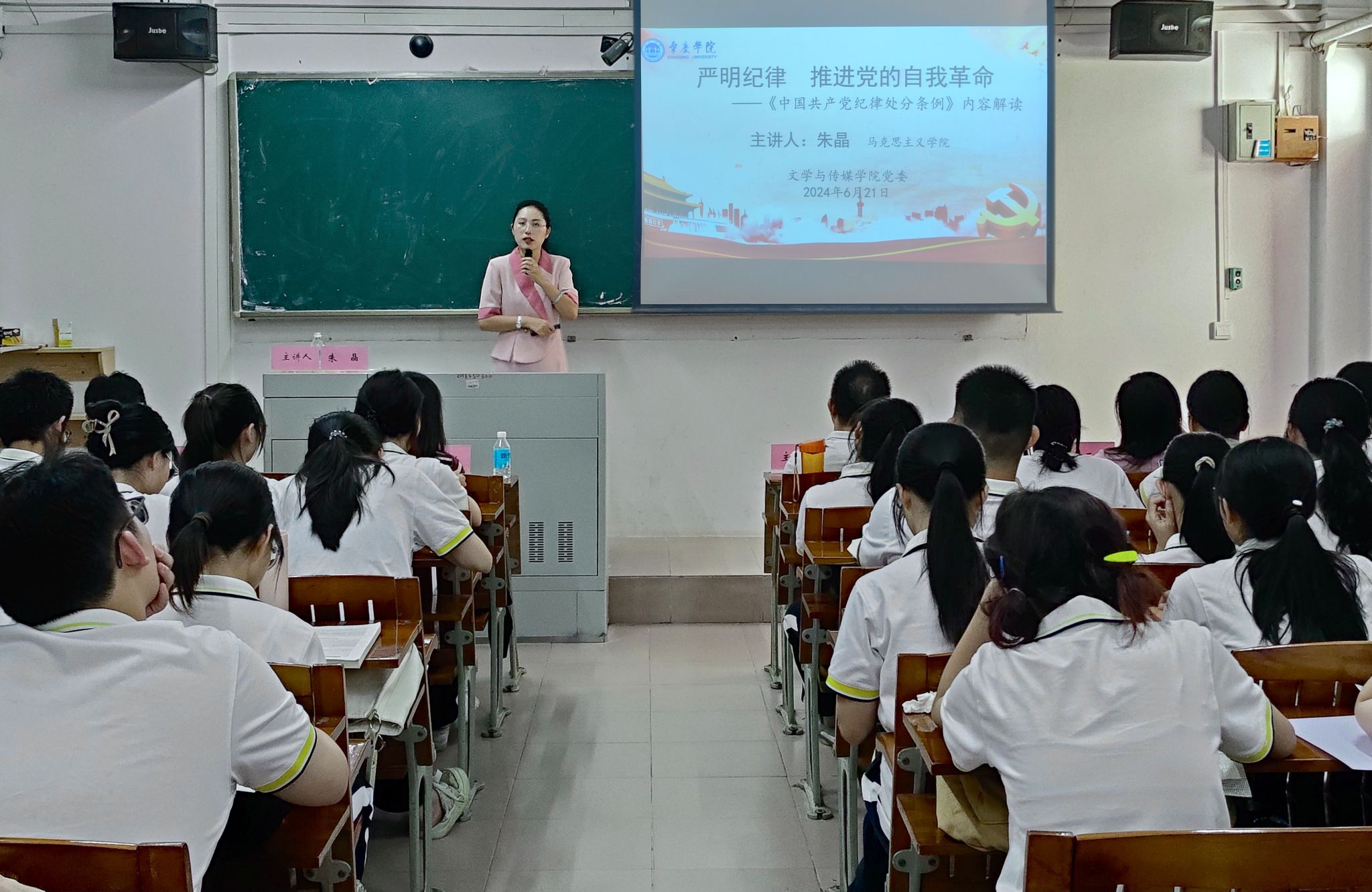课上,朱晶老师围绕“为什么学党纪”“党纪学什么”“怎么学党纪”三个方面进行宣讲,并提出三点学习要求:第一,要深刻认识党纪学习教育的重要意义;第二,要准确把握党纪《条例》修订的主要内容;第三,要切实加强对《条例》的学习和贯彻落实。