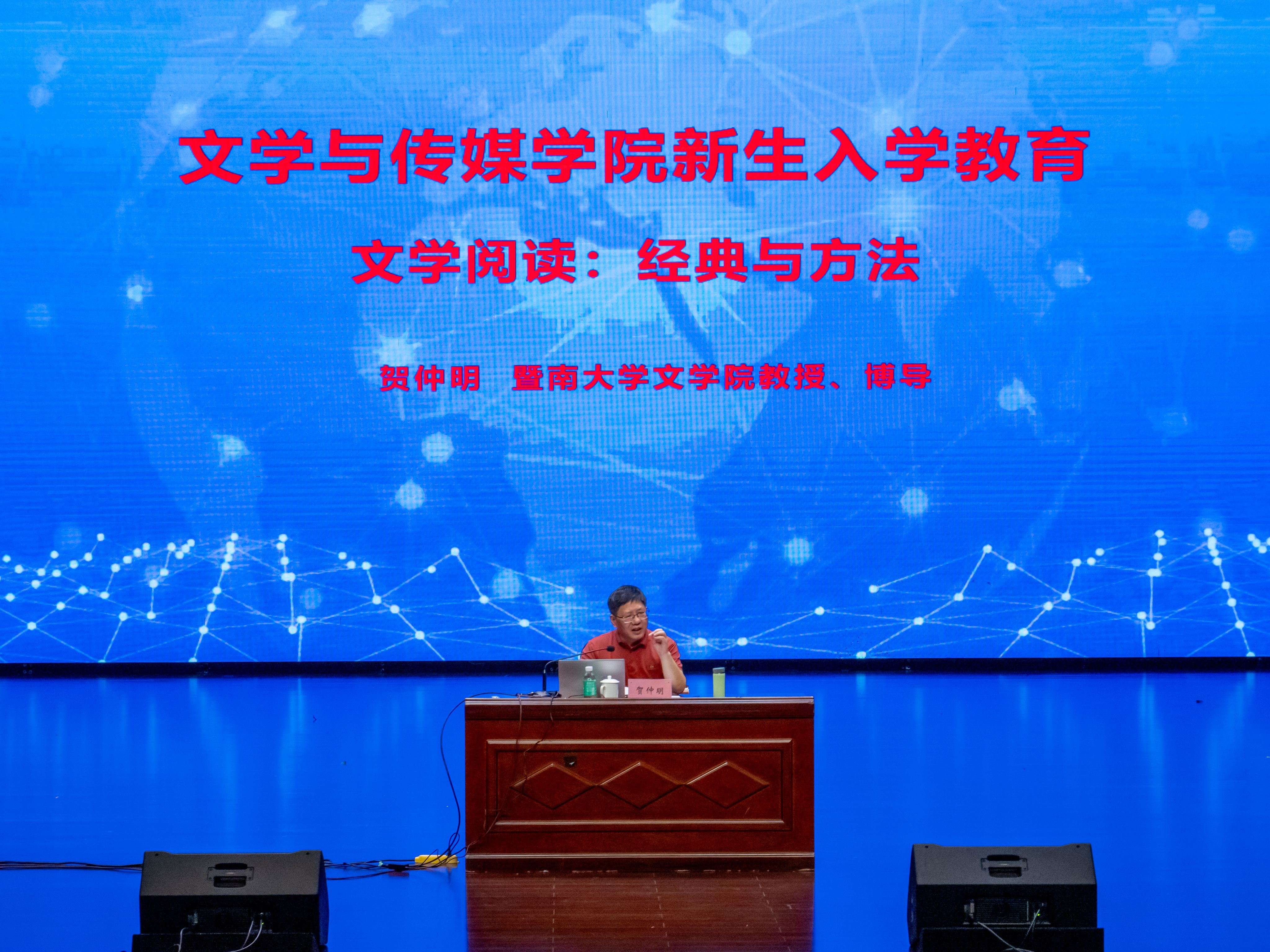 本网讯 9月20日,暨南大学365英国上市教授、博士生导师贺仲明教授应邀到公司做题为《文学阅读:经典与方法》的专题讲座。经理杨红军出席并主持讲座,2025级全体新生及研究生参加讲座。
