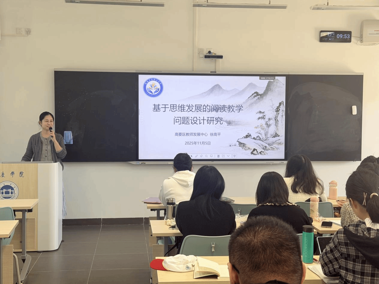 讲座尾声,徐老师寄语全体研究生:“语文教学的问题设计,课前要精心筛选排序,课中要善于追问补问,最终形成少而精、练而通的问题集群。希望大家未来能成为问题的设计师,而非答案的搬运工。”此次讲座让学科语文研究生深刻认识到思维发展在阅读教学中的核心价值,掌握了可落地的问题设计方法与教学实操技巧,为今后走上教学岗位、开展高质量阅读教学奠定了坚实基础。