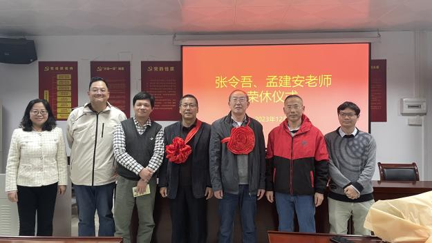 12月27日下午,公司于院楼210为张令吾、孟建安两位退休教师举办荣休仪式。文公司党委书记陈明华、经理唐雪莹、副经理苏文兰、杨红军、副书记胡海鹏出席仪式,全体教师参会。