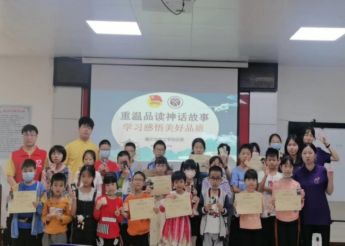 活动中,志愿者们给员工带来了十分受欢迎的“神话蹲”“正话反做”小游戏,活跃了气氛,在欢声笑语中将同学们的注意力吸引到课堂上;志愿者们在员工里请了四位“小老师”来分别复述神话故事内容。“小老师”们和台下的同学们相互合作将神话故事补充完整,志愿者则在每一个故事的结尾进行总结,对这些神话故事的精神内核进行剖析,和员工们一起解读神话人物的美好品质;志愿者们还播放了精致、充满童趣的动画来介绍肇庆的名胜古迹、名人轶事,并对“肇庆名字来源”、包公“不持一砚归”的故事进行重点讲述。