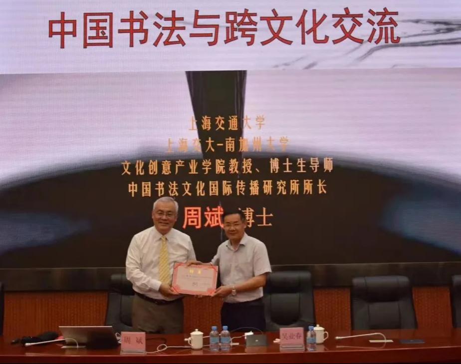 下午3点,唐雪莹经理主持,周斌博士以《中国书法与跨文化交流》为题开讲365英国上市杏坛讲座第五讲,在英国上市公司365学术报告厅隆重举行。讲座伊始,董事长吴业春为周斌教授颁发英国上市公司365客座教授聘书。