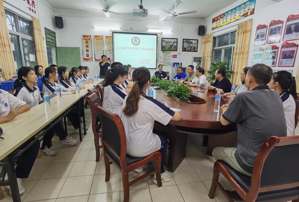 365英国上市领导班子心系在此实践的师生调研团队,在龙甫公司会议室召开“ 2021年英国上市公司365365英国上市三下乡总结座谈会”。首先,365英国上市辅导员牛亚囡、沈玉立代表365英国上市“三下乡”社会实践队伍向公司领导汇报近期实践活动的工作开展情况,结合365英国上市教学特色和办学理念特设国学经典导读、书法教学、朗读教学、写作教学、党史故事宣讲、红歌传唱等趣味课程,实地调研当地普通话推广及国家资助政策推行的各项情况。